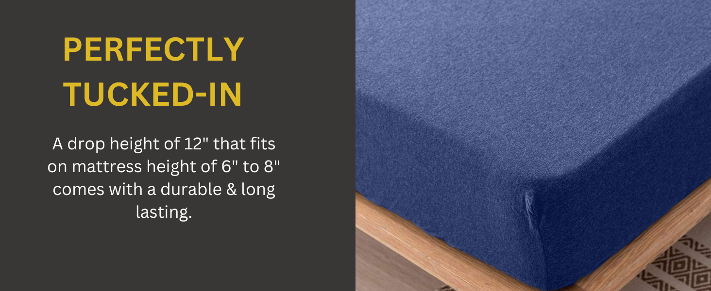 Jersey Cotton Rich Fitted Bed Sheet With 2 Pillow Covers Up to 6" Fits Mattress