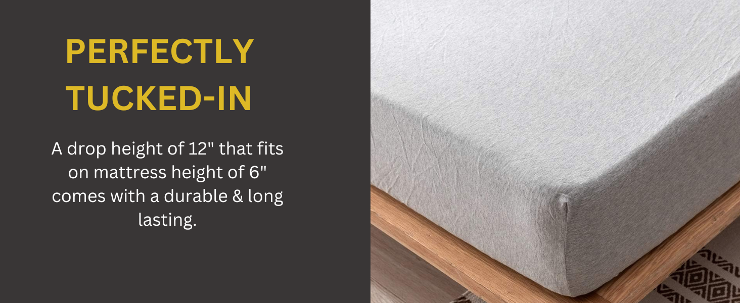 Jersey Cotton Rich Fitted Bed Sheet With Pillow Covers Up to 6" to 8" Fits Mattress